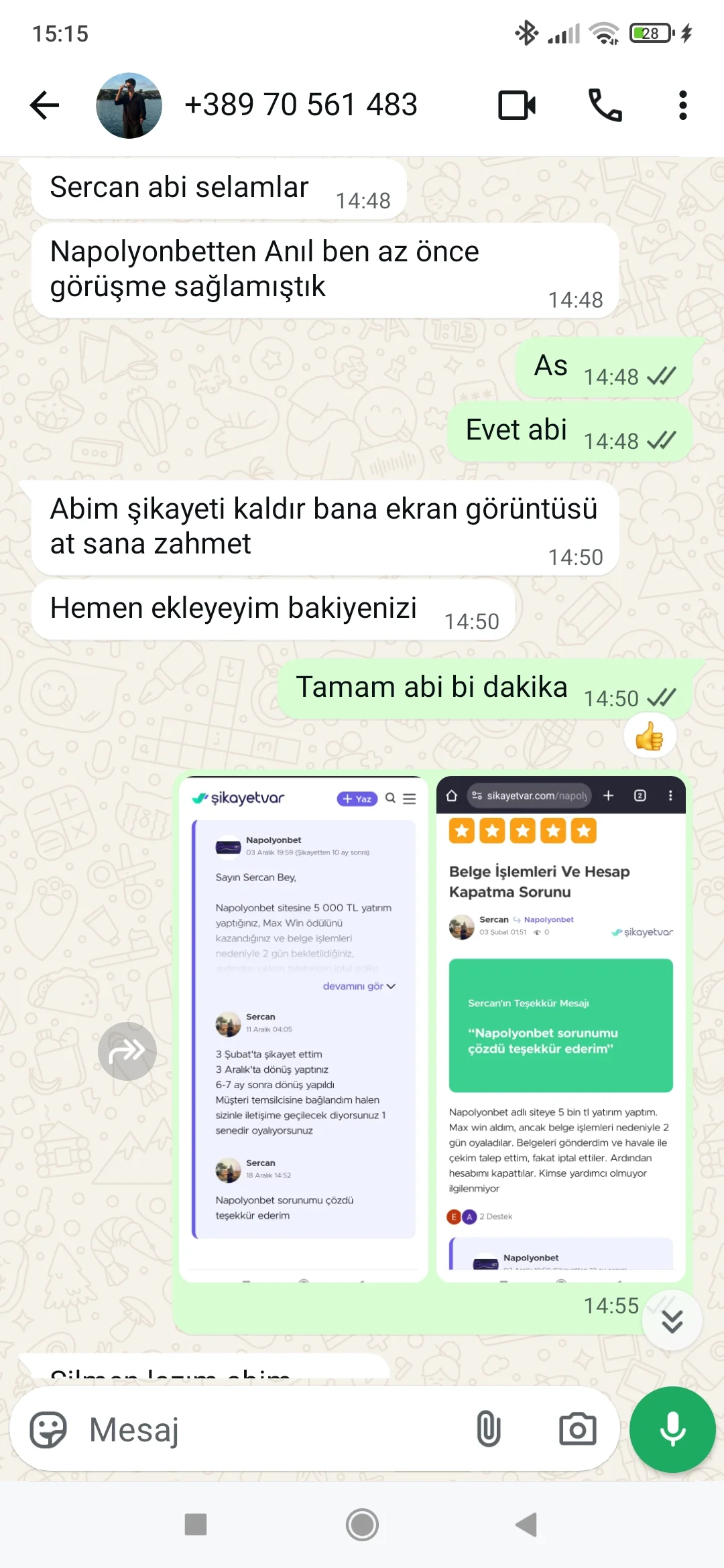 Napolyonbet sitesi beni dolandırdı 9 ay önce 5 bin yatırım yaptım engellediler bakiye sildiler şikayet var a yazdım bugün aradılar şikayeti silin ödemenizi yapacaz dediler ama yapmadilar