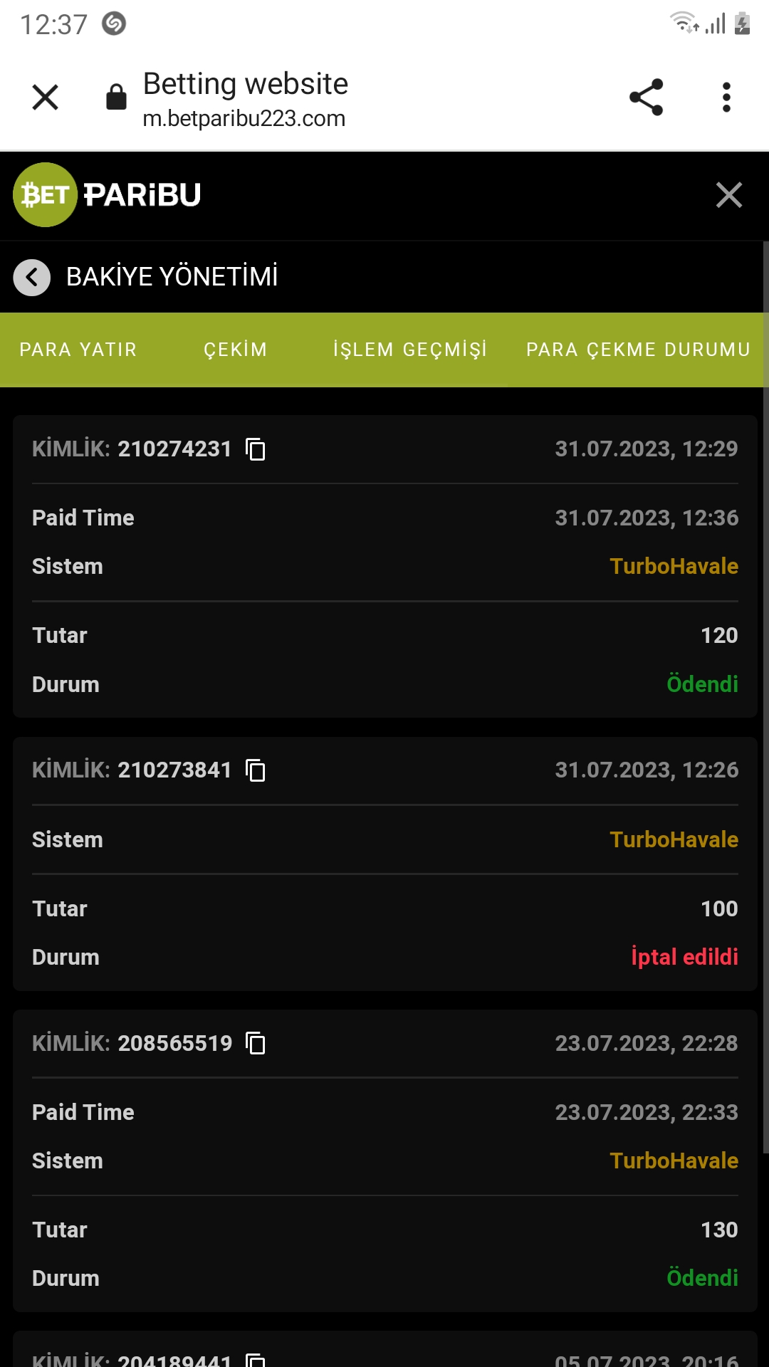 Betparibu 120tl bir dakikada hesabimda cok teşekkürler betparibu