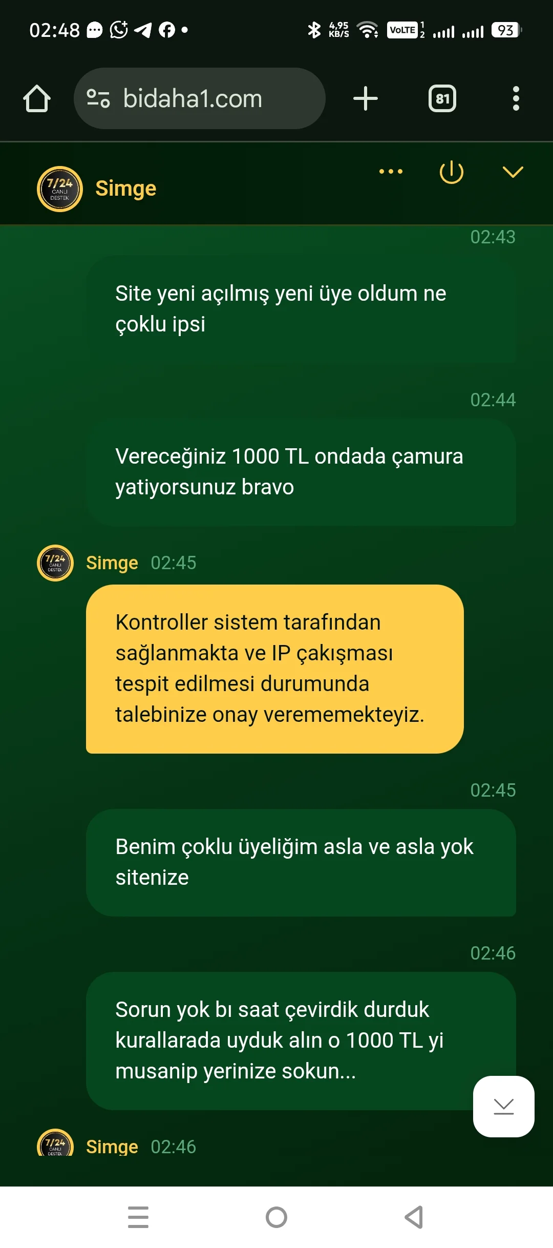 Ödeme yapmıyor ip cakismasi yalanı soyluyor1000 TL çekim verildi gelecekmi bakalm ikinci şans ile yaptim