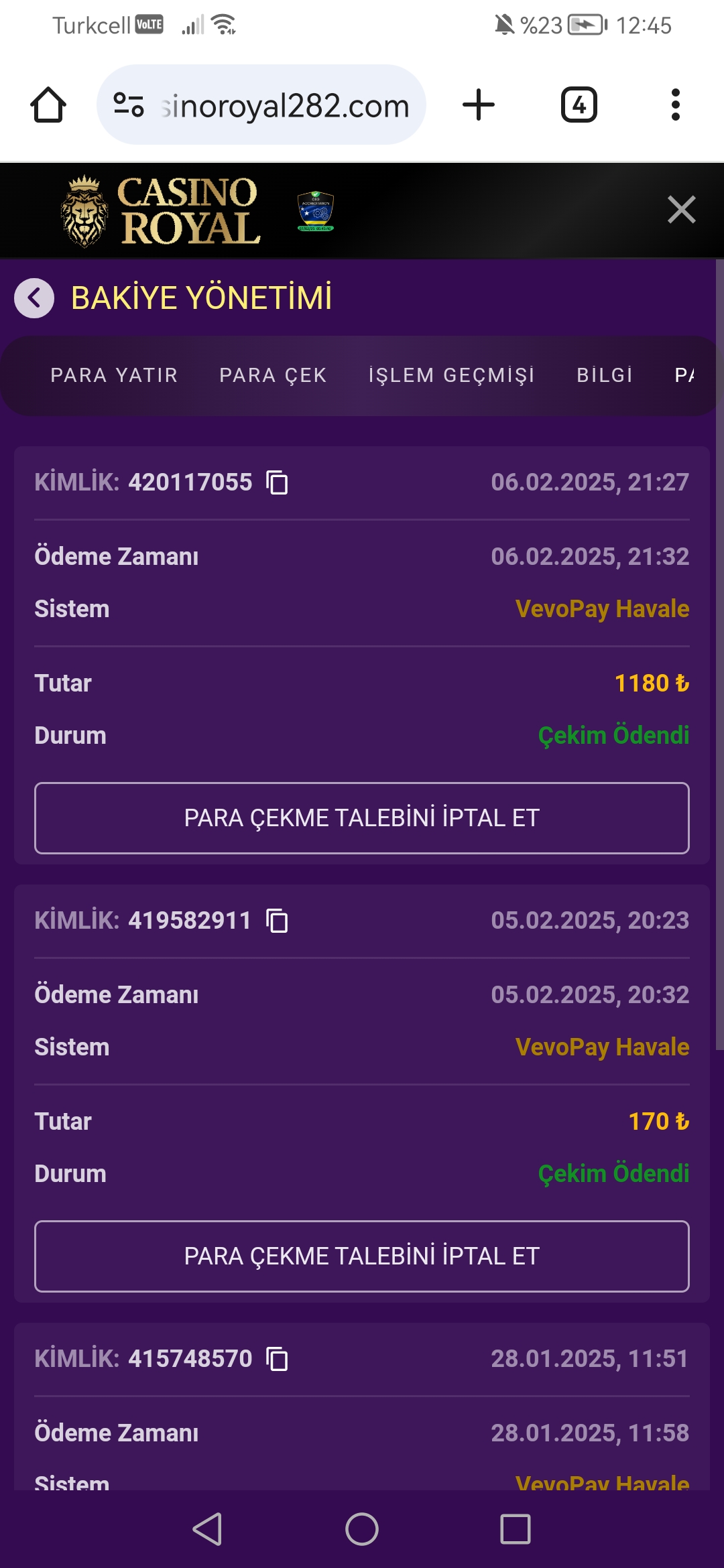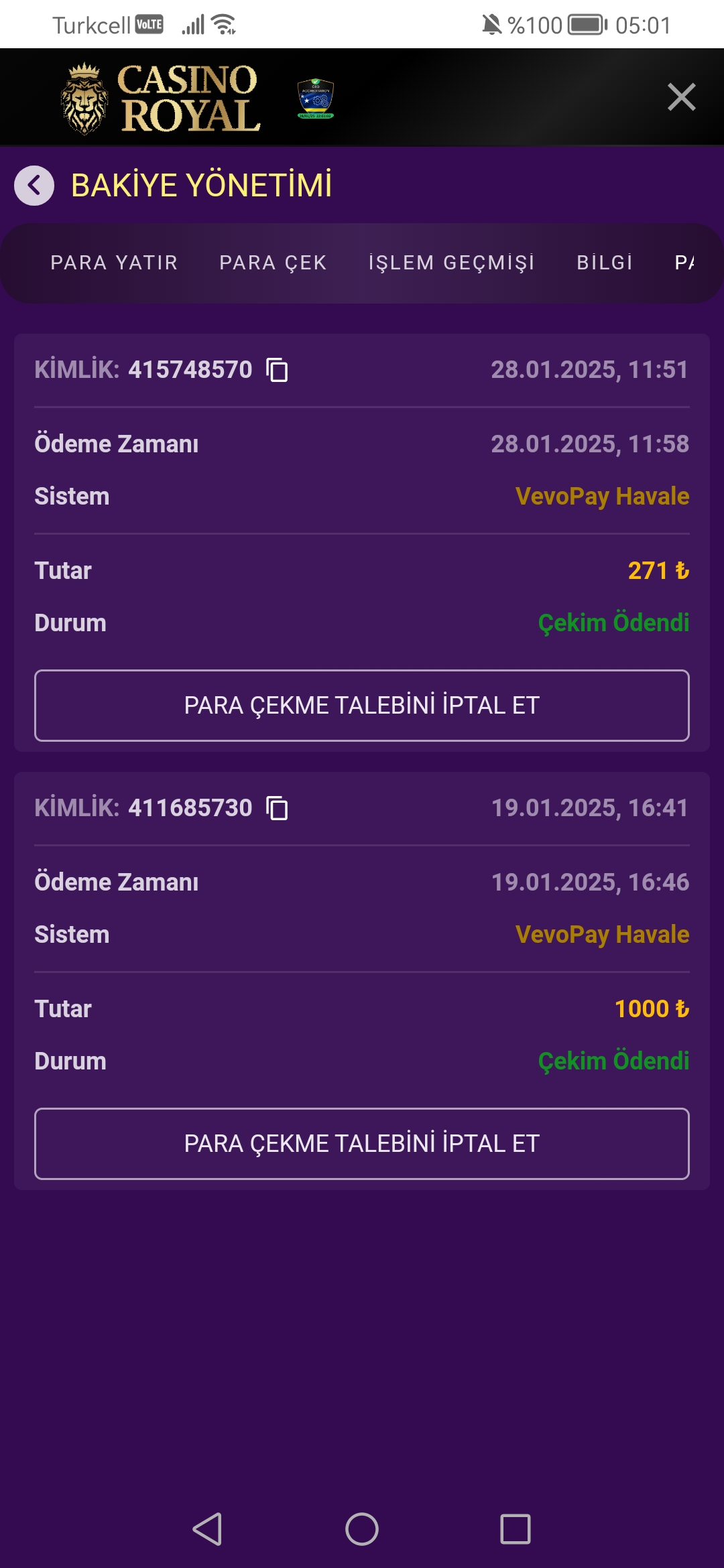 Casinoroyal hızlı çekim
