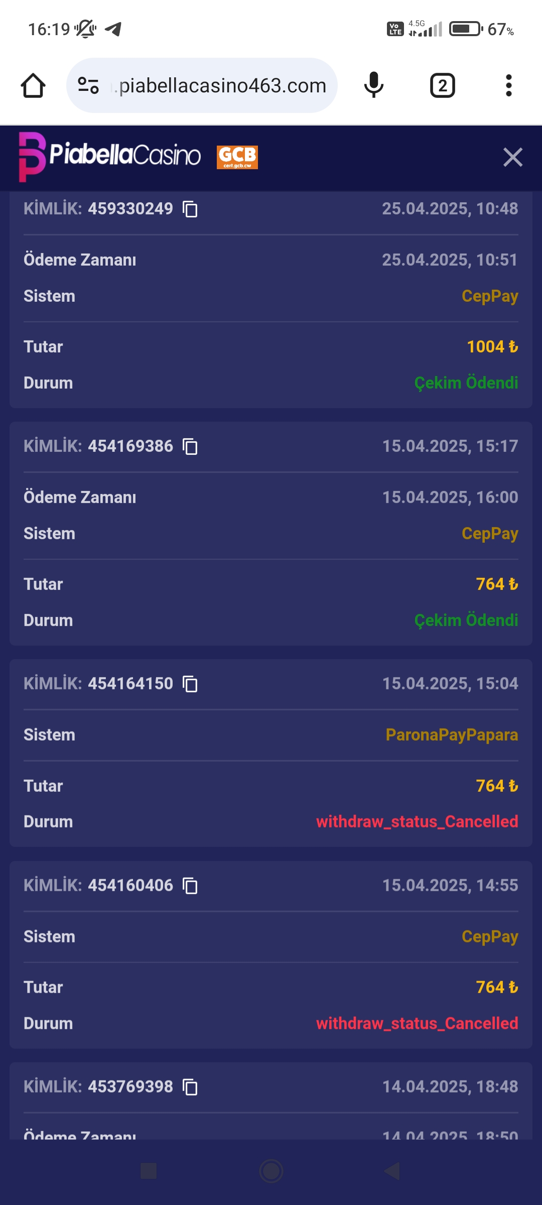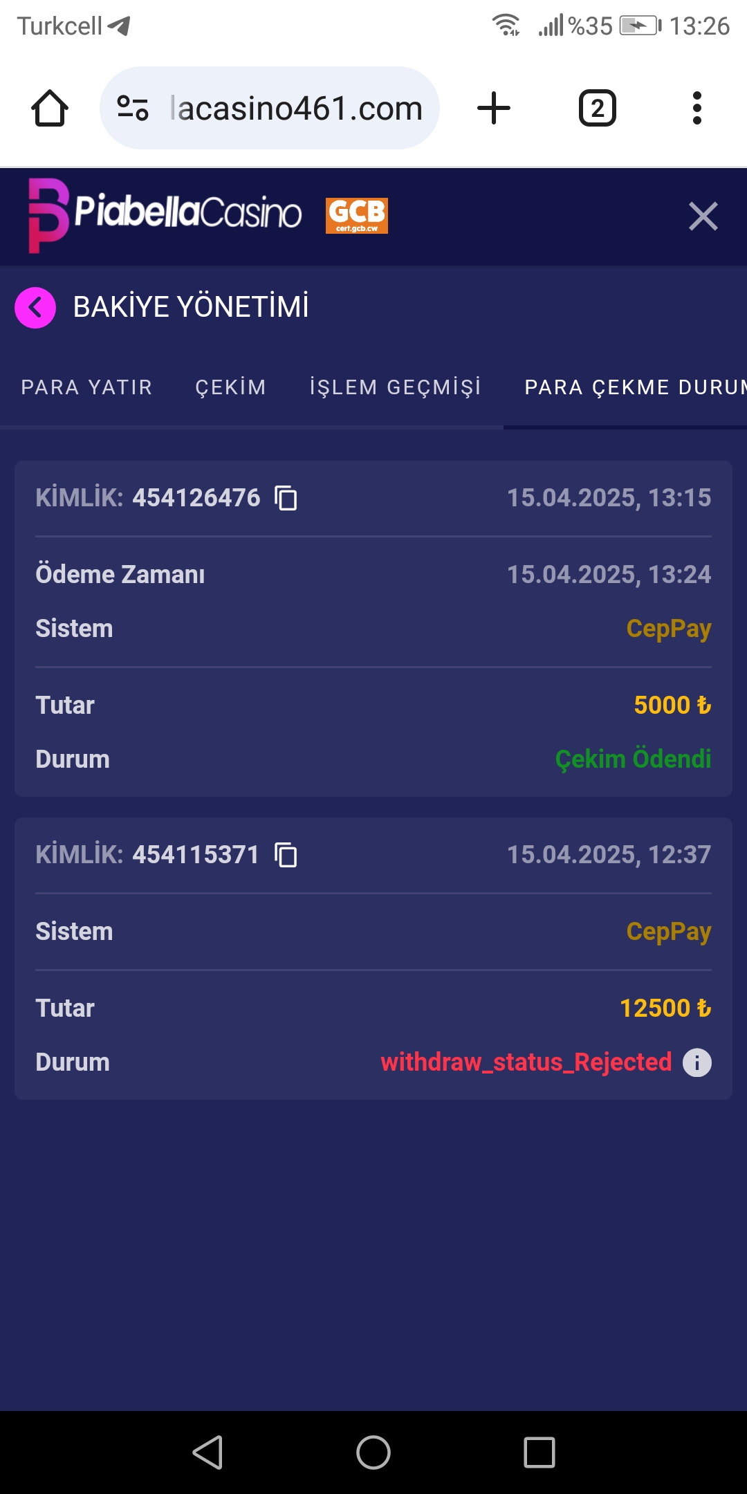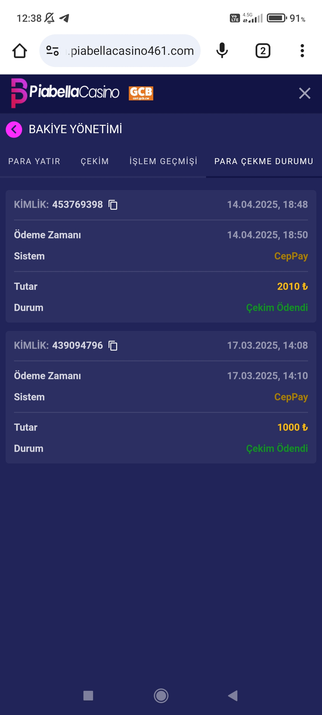 Piabella casino çekim kısa sürede ödendi