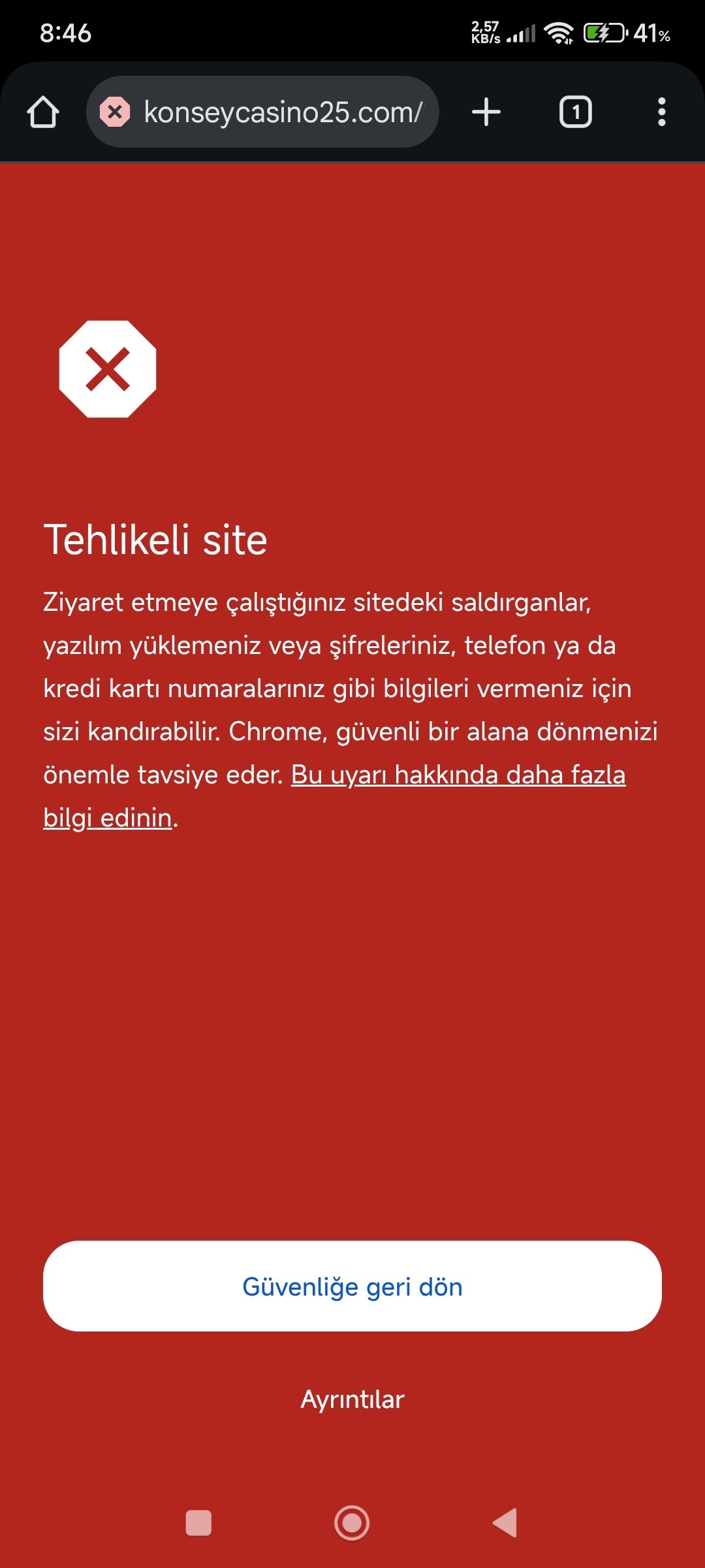 CloudFlare çöktükten sonra genel internet trafiği sıkıntıya düştü ve bizde böyle bir hata aldık. Google ile iletişim sağlandı ve bu uyarı yakaın zamanda kaldırılacaktır. Şu anda güncel adresimiz konseycasino30.com dur. Şu anda herhangi bir olumsuz durum bulunmamkatadır efendim. Yine de bu durumu paylaştığınız için teşekkür ederiz.