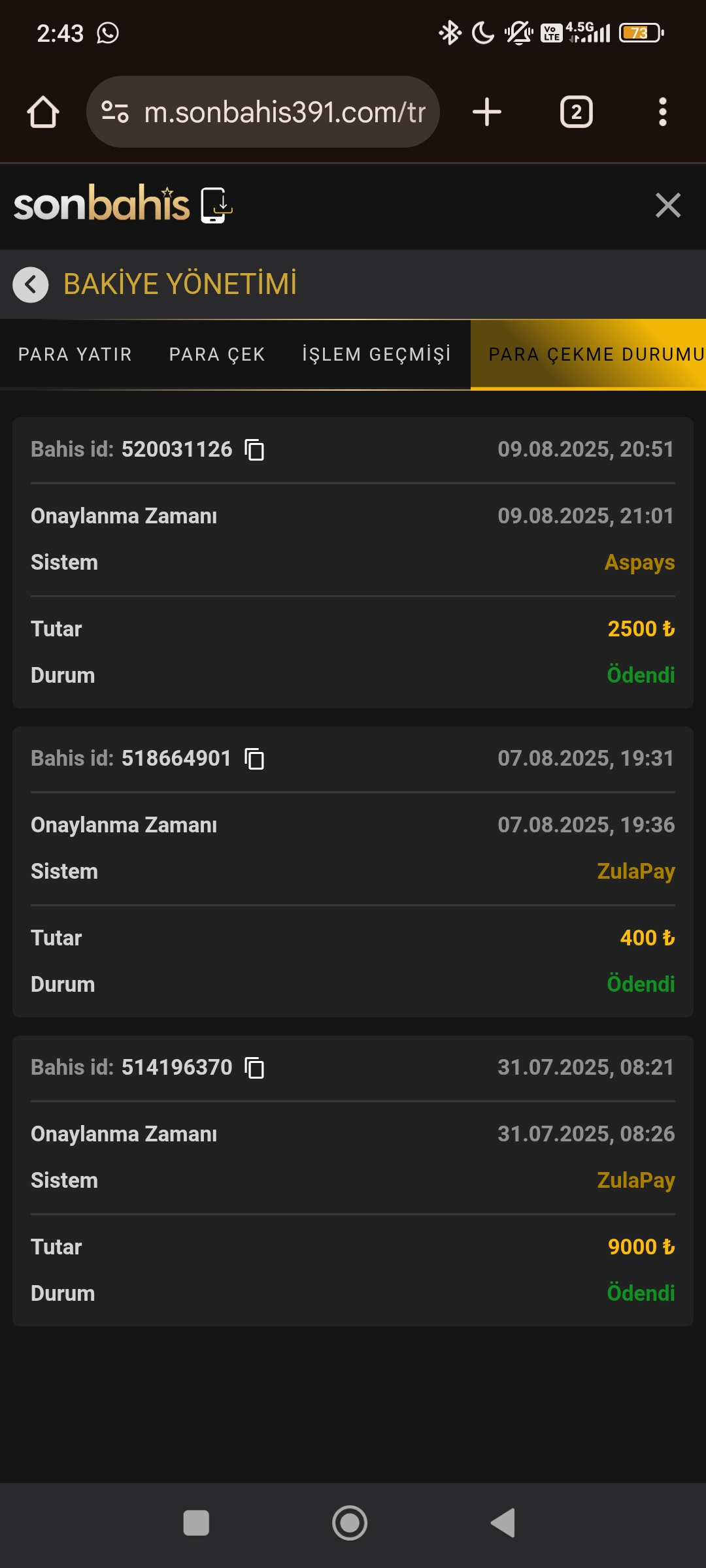 Vaycasino çekim ödendi teşekkürler. Gencer02