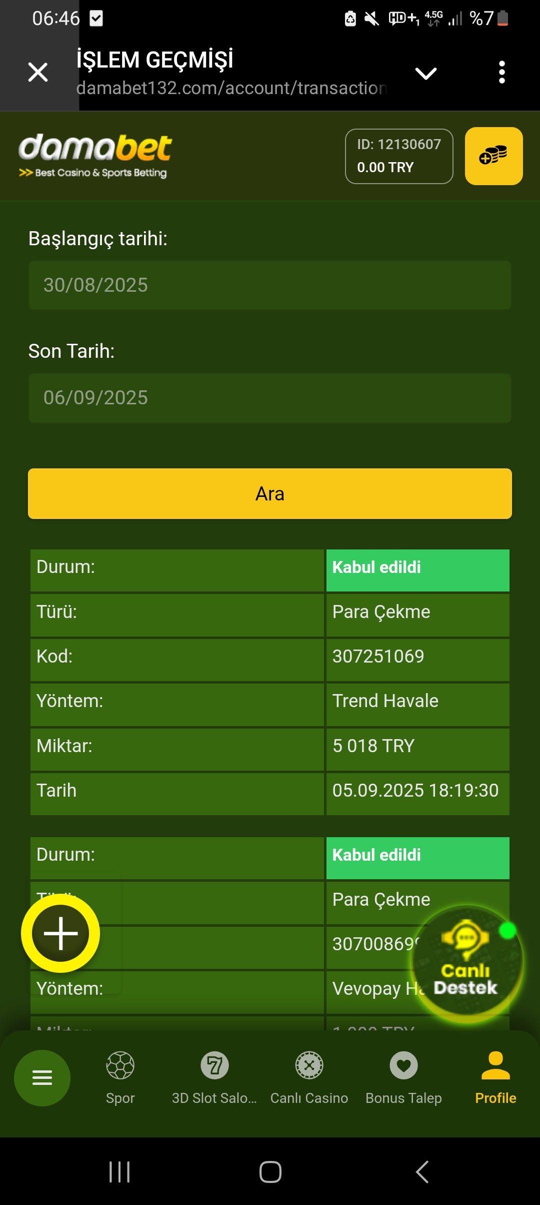 Damabet cekim talebim hemen onaylandi kullanici adim Cedrich11